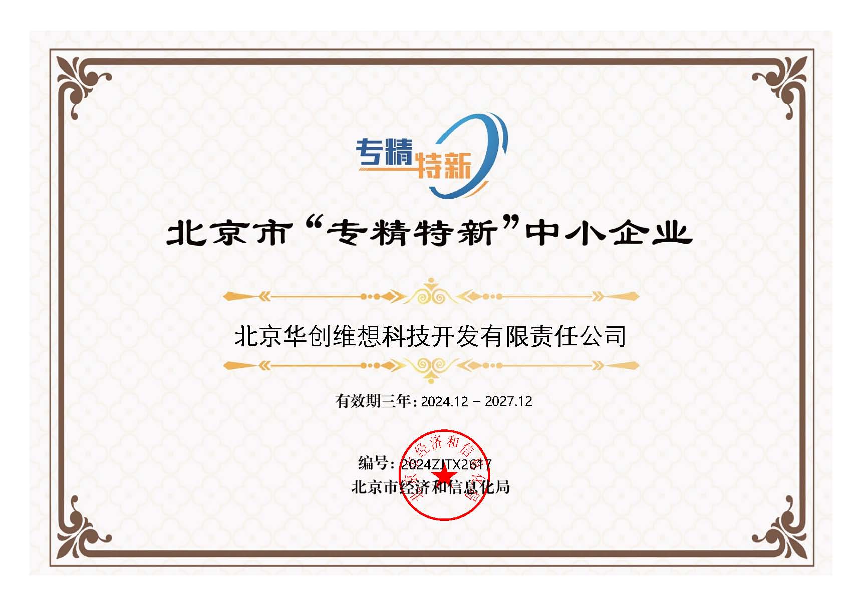 喜報(bào)—華創(chuàng)維想獲得北京市“專(zhuān)精特新”中...